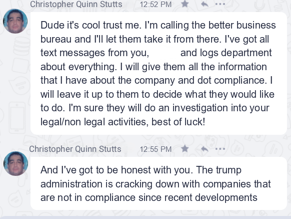 Such conduct is unacceptable and unprofessional. I do not recommend working with this driver in the future.